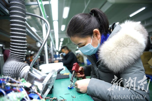 ( 1月29日,長沙市雨花經開區(qū)可孚醫(yī)療科技股份有限公司,工人們在流水線上作業(yè)。湖南日報·新湖南客戶端記者 唐俊 田超 攝影報道)
