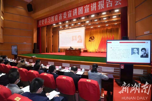 這次黨史學(xué)習(xí)教育,中央明確提出“學(xué)史明理、學(xué)史增信、學(xué)史崇德、學(xué)史力行”的總要求。宣講中提到,要深刻把握黨史學(xué)習(xí)教育的重點(diǎn)要點(diǎn),不斷從黨的光輝歷史中汲取砥礪奮進(jìn)的智慧和力量。要把湖南百年滄桑巨變放到黨的百年奮斗史中去理解和把握,把湖南老一輩革命家的崇高風(fēng)范和光榮傳統(tǒng)發(fā)揚(yáng)開來、把他們開創(chuàng)并為之奮斗的事業(yè)接力下去,為實(shí)施“三高四新”戰(zhàn)略、建設(shè)現(xiàn)代化新湖南凝聚磅礴力量,不斷提振建功新時代、奮進(jìn)新征程的精氣神。