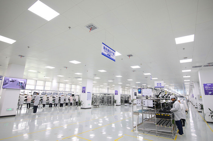 湘江鯤鵬產(chǎn)業(yè)園的生產(chǎn)車間內(nèi),服務(wù)器和PC機(jī)兩條生產(chǎn)線正高速運(yùn)轉(zhuǎn)。安娜攝