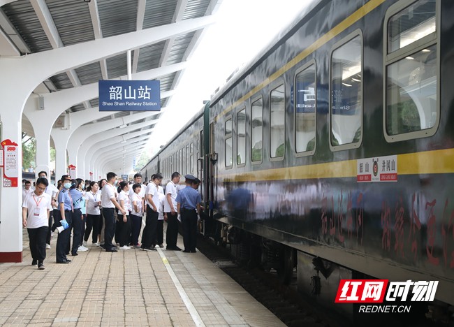 紅網(wǎng)時刻6月18日訊 (攝影 陳杰 張興莎 整理 姜媚) 它開了!它開了!它帶著湘贛人民的熱切盼望開通了!6月18日早上8點,首趟韶山至井岡山紅色專列從韶山火車站開出。韶山和井岡山;湖南和江西,情牽紅土地。