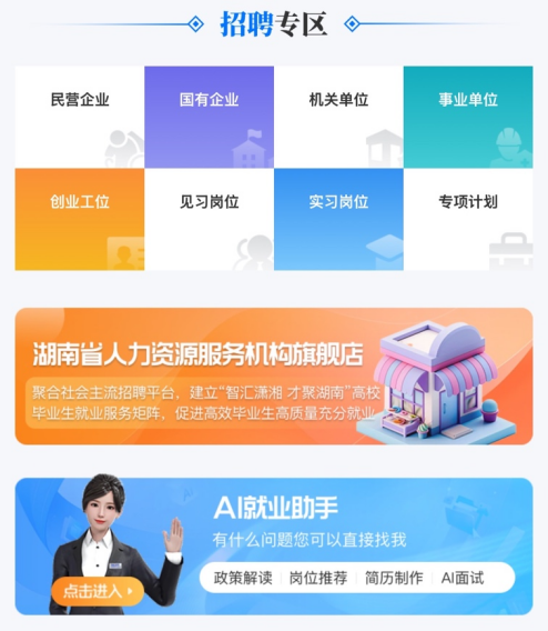 記者了解到,該平臺(tái)呈現(xiàn)專業(yè)性、智能性、便捷性和綜合性四大特點(diǎn)。既是人社部門專門為服務(wù)高校畢業(yè)生就業(yè)打造的快速通道,方便求職者隨時(shí)隨地查看崗位信息、投遞簡(jiǎn)歷、獲取AI就業(yè)助手智能服務(wù);也是一鍵直達(dá)“創(chuàng)業(yè)在湘”公共服務(wù)平臺(tái)、零工平臺(tái)、招聘會(huì)專區(qū)、經(jīng)辦服務(wù)平臺(tái)等的綠色通道,能夠便捷地辦理職業(yè)指導(dǎo)、就業(yè)創(chuàng)業(yè)培訓(xùn)、創(chuàng)業(yè)貸款、社保補(bǔ)貼、就業(yè)登記等業(yè)務(wù)。