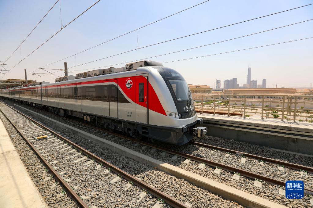 由中國企業(yè)承建的埃及齋月十日城輕軌鐵路通車試運(yùn)行(2022年7月3日攝)。新華社記者 隋先凱 攝