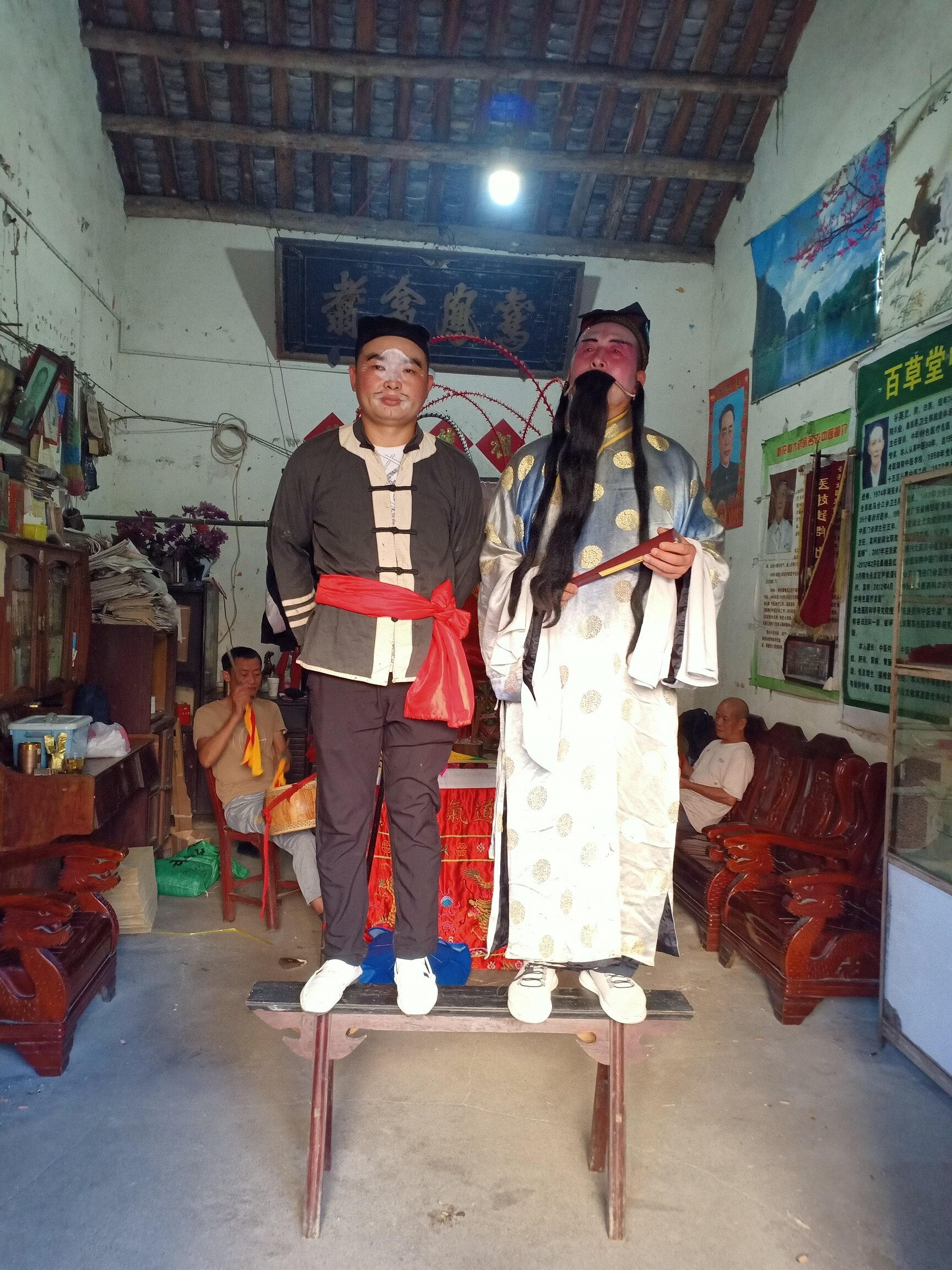 白族儺愿戲啊,誰還在惦念?是我的父親。老父親的慈祥與儺戲的親切,是一對患難與共的好友。我的老家,在麥地坪村的一個山清水秀的小村莊,村莊里都是一些儺戲迷。都愛看白族儺愿戲!父親對鄉(xiāng)鄰友好,談?wù)搩笐蛭幕a粗。1990年修新房,父親唱儺戲。孫子周歲,儺戲在唐舍里開腔。我母親70歲那年,父親邀請喻明師的儺愿戲班來家演出,堂舍里涌進許多熟悉的儺愿迷,與儺戲師傅們共敘佳話。去年,兒子考進職場,成為一名教師,儺愿戲又一次敲開了家門。每一次儺戲的演出,傳承了一種古老的白族文化,又見證了一個農(nóng)村家庭不斷創(chuàng)造美好生活的過程。