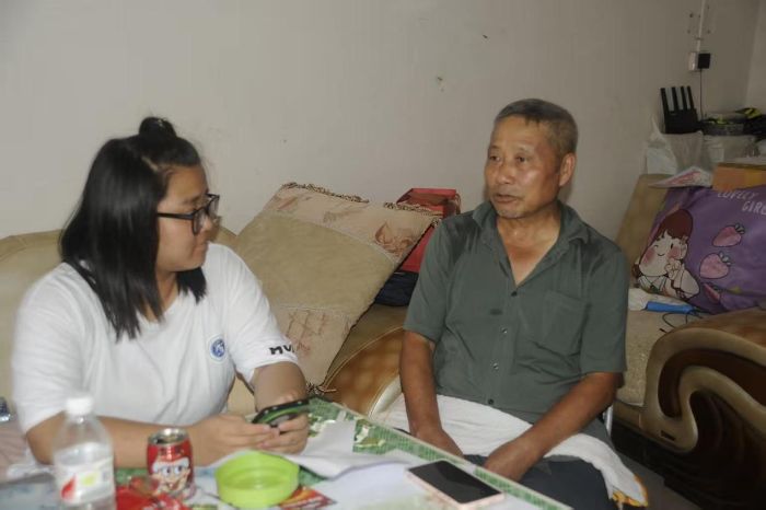 湖南財經學院社會實踐隊隊員采訪老黨員鐘云初 曾青丹 攝