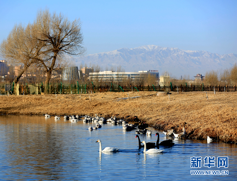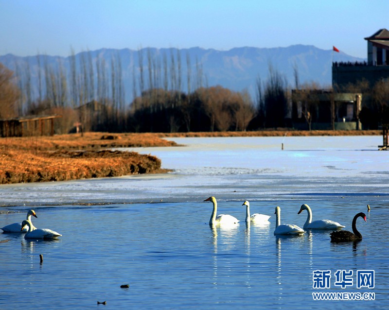甘肅張掖:天鵝戲水報春來
