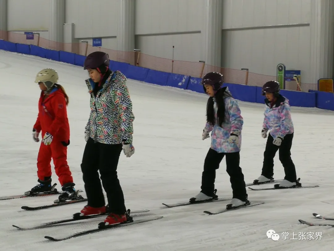 除個(gè)別有滑雪經(jīng)歷的外,“小白”們圍著教練,洗耳恭聽。他們時(shí)而俯身,時(shí)而打開雙腳,學(xué)習(xí)滑雪要領(lǐng)。