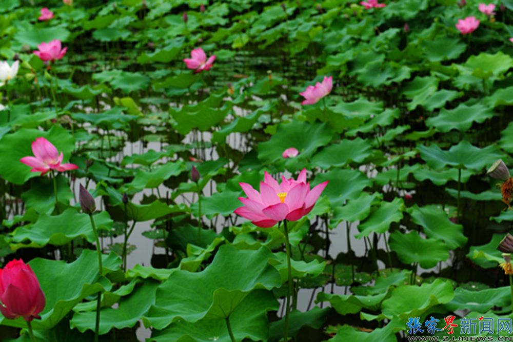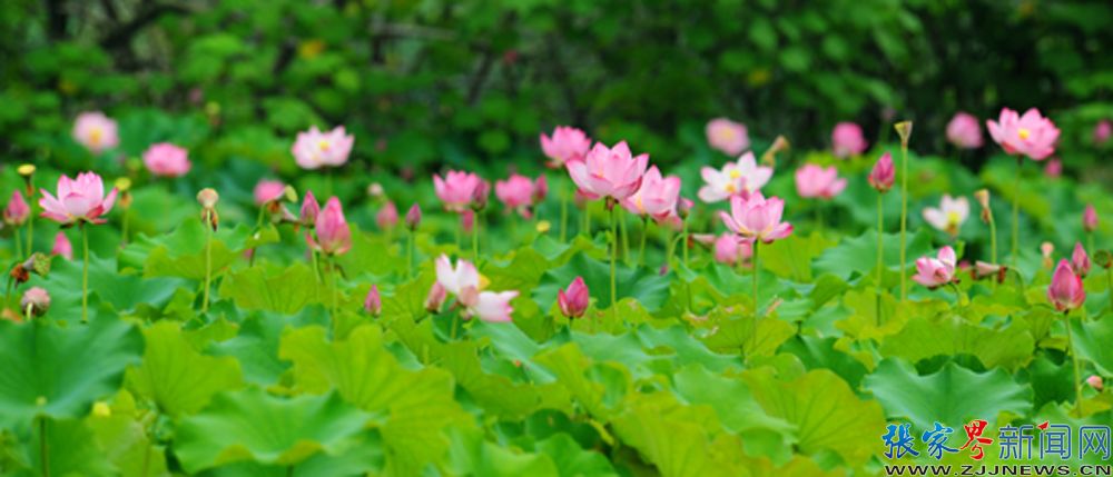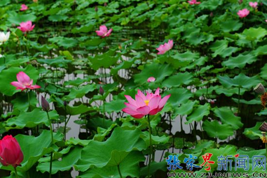 張家界新聞網(wǎng)7月12日訊(記者 張明濤 通訊員 李法貴)張家界荷花園里的荷花,不是像大多數(shù)山水園林里的襯景,她亭亭而立、郁郁而生,自成一景。成片的荷花被彎曲的小路分開阡陌,盡顯洋洋大觀之象。